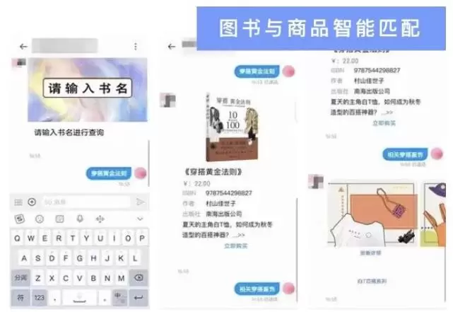 打破传统的书店思维模式,将图书内容与相关产品及活动做关联,后期在用户搜索图书时,Chatbot智能匹配商品或活动,向用户主动推送相关内容,更加便于图书和商品的交叉营销,有助于文化观点输出和生活理念传递;