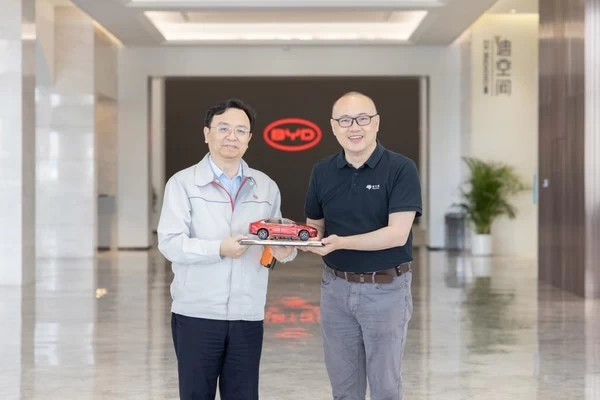 比亚迪股份有限公司董事长兼总裁王传福(左)、地平线创始人兼首席科学家余凯(右)