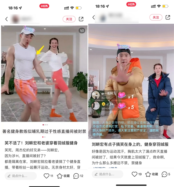 比如,刘畊宏的直播多次被封,被封的原因也很搞笑,因为胸肌过于蓬勃,被系统禁播。为了避免直播间被封,刘畊宏夫妇直接穿上羽绒服开播运动,成为名副其实的“暴汗服”。