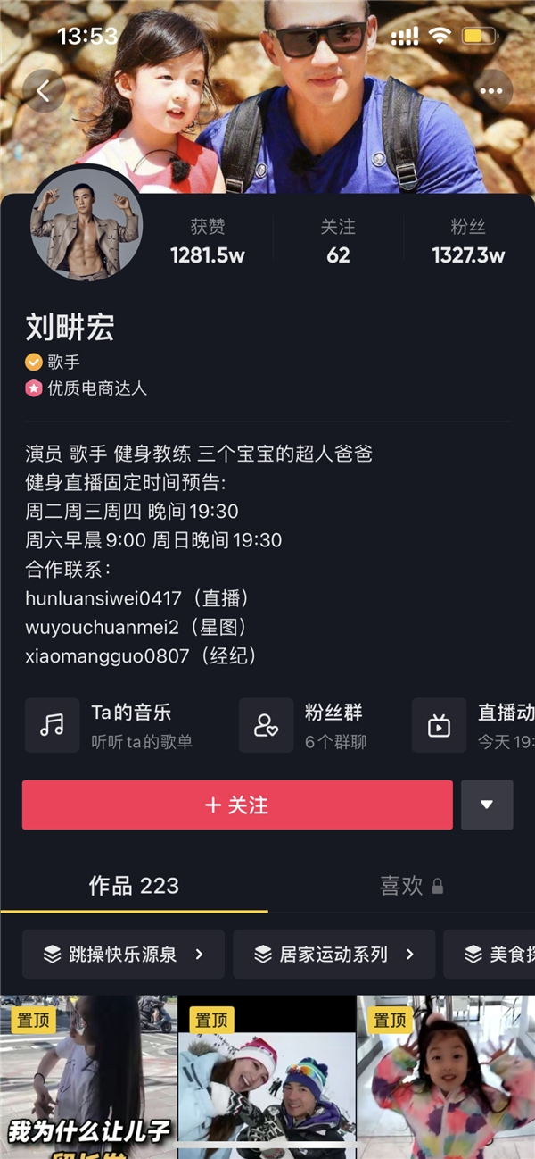 目前刘畊宏健身直播成为了日常,在个人简介上晒出固定的健身预告,源源不断地吸引网友来蹲守直播。