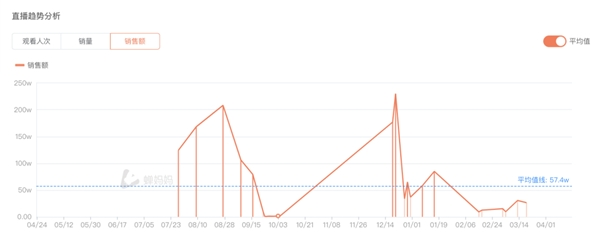 其中4月17日的直播专场,持续了1小时50分,单场观看人数1390.8万,平均在线人数70万,最高的时候有110万人同步观看跟脸,场面非常壮观。
