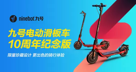2022年是九号公司品牌成立的10周年,公司为感谢用户的一路支持,特别打造了九号电动滑板车10周年纪念版和特别珍藏版E22,以此回馈广大粉丝的厚爱。令人惊喜的是,九号电动滑板车10周年纪念版还与年轻人十分喜爱的国漫之光《一人之下》联动,推出了限定礼盒,为年轻用户增加更多个性标签。