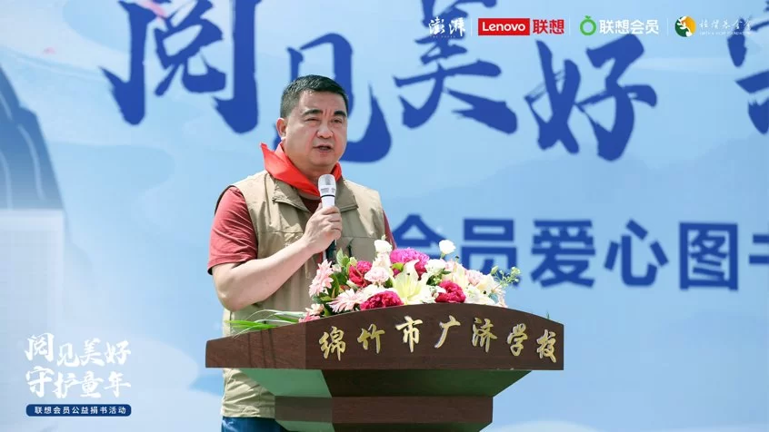 扎根西南边陲乡村教育、为乡村教育振兴兢兢业业数十载的广济学校校长罗元勇,代表六所授捐的学校在捐赠仪式上致辞,他说,广济学校受灾后得到国家、地方政府、教育局以及众多如联想公司一样的社会力量的关心和帮助,学校的软硬件设施逐年得到改善。他指出,阅读是乡村学校十分注重的教学内容,绵竹地区孩子大多来自周边村镇的农村,父母在外地打工,书籍是这些孩子最好的朋友。孩子们通过课外阅读来拓展课堂以外的知识,开阔视野,培养兴趣爱好,对提升乡村孩子的思想深度,树立更高远的理想有十分重要的作用。