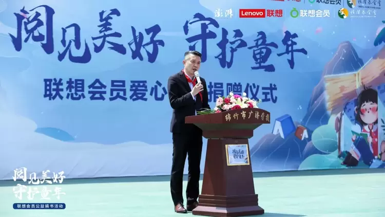 此次“阅见美好 守护童年”公益捐书活动由联想中国客户管理中心联合桂馨慈善基金会共同发起,澎湃新闻媒体支持,活动捐赠仪式在四川绵竹广济镇学校举行。四川省德阳市绵竹市委教育工委书记、局党组书记、局长刘强、联想中国西南大区总经理李刚、绵竹市师培中心主任胡克明、绵竹市广济学校校长罗元勇、五位绵竹辖区乡镇学校校长出席了本次捐赠仪式。
