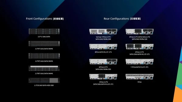 同时,NF5280M6这款"性能王"不仅具有良好的计算性能,还具有更优的存储和PCIe卡扩展性,可提供五种前置配置和八种后置配置,能够灵活应对市场多样化的应用场景,堪称"百变金刚"。