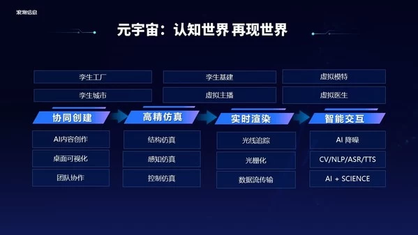 元宇宙,可以说是一个认知世界、再现世界的过程,这个过程涉及到在线协同建模、高精度仿真、实时渲染、智能交互等多个环节,每个环节下都有对应的关键技术、软件栈和算法工具。