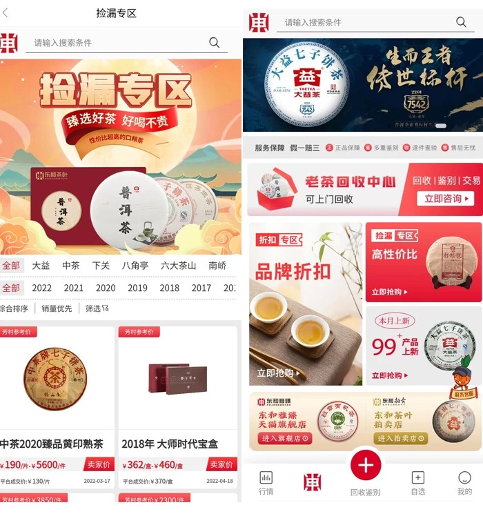 围绕“卖茶”“买茶”两大核心功能,在交易渠道端,提供老茶回收、东和拍卖、托管交易、撮合交易等服务,帮助实现茶叶快速变现,卖家自主选择渠道出售产品,买家自由选购,从产品IP打造实现销售价值的一体化服务,同时实现茶叶市场中介交易数字化。