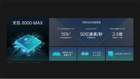 作为性能机新品,OPPO K10系列配备旗舰性能芯片,其中OPPO K10搭载全球首发的MediaTek天玑8000-MAX 5G移动平台,该平台采用4+4八核CPU架构设计,最高主频达2.75GHz,安兔兔跑分超77万分,辅以 LPDDR5 + UFS 3.1 存储,采用金刚石 VC 液冷散热系统,散热面积提升 18%,保障高性能的前提下久玩不烫手。