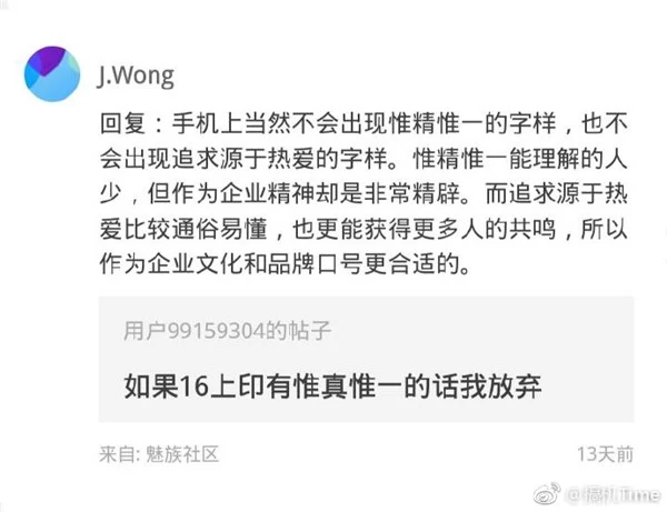 从图片来,魅族16背面的整体设计跟魅族15相差不多,摄像头和闪光灯居中竖向排列,下面是魅族的Logo,四边的弧度很温润,手感应该会非常不错,同时白色也看起来晶莹剔透。值得一提的是,背面底部还出现了一个印章,上面写着“惟精惟一”,但由于此前黄章已经表示手机上不会出现“惟精惟一”的字样,因此这可能只是工程机,量产机上不会有这个印章。