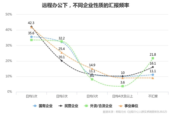 - 超过四成受访者在远程办公期间需要每日进行2次及以上的工作汇报;