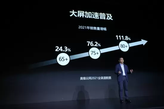“在产品布局上,海信激光电视是电视大尺寸化进程的拓荒者。2014年,海信率先推出100吋激光电视,2019年,海信又率先完成75-100吋全尺寸段布局。”刘显荣在海信视像春季新品发布会上表示,作为大屏电视的换代产品,激光电视一直是大屏竞争的引领者。 奥维云网数据显示,2021年,海信电视在75+、8000元以上高端大屏市场牢牢占据第一。而在100+大屏市场,海信也是第一品牌。奥维云网全渠道监测数据显示,今年第一季度,在100吋+大屏电视销售额中,海信激光电视占比63.6%,稳居第一。