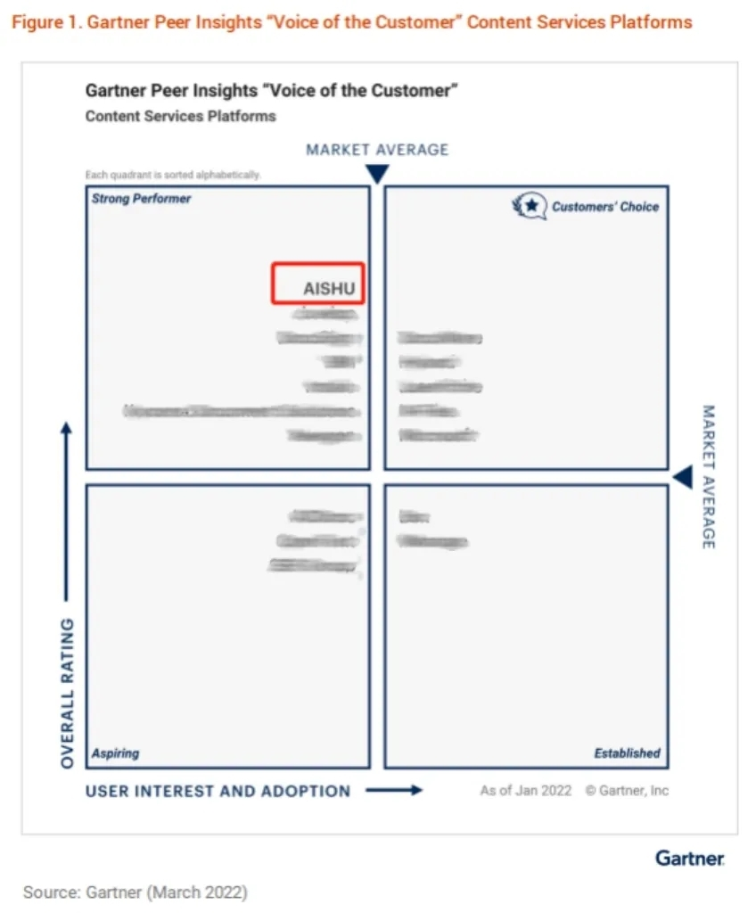 (图源:Gartner Peer Insights ‘Voice of the Customer’: Content Services Platforms,2022)