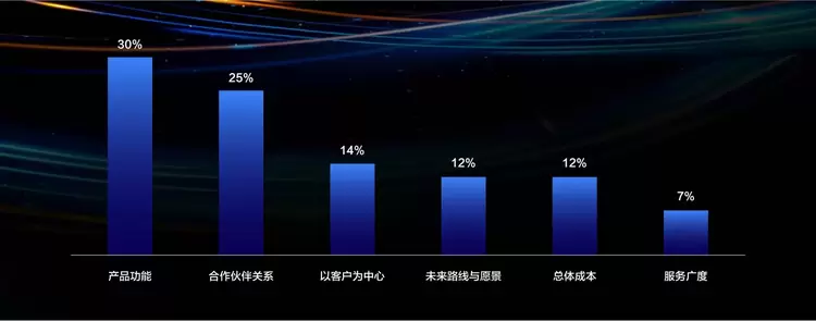 在“购买体验“维度中,Gartner通过访谈模式,探寻客户购买AnyShare的驱动性因素。经数据统计可以发现:”产品功能与性能“”强大的合作伙伴关系“”以客户为中心的价值观“以及”可期的产品路线图与未来愿景“等四大驱动因素,帮助客户做出最终购买决策。