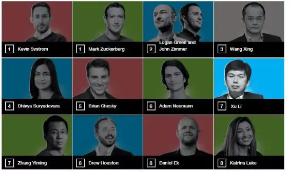 此外,包括Facebook首席执行官马克·扎克伯格、Instagram(Ins)联合创始人兼首席执行官Kevin Systrom、新西兰总 理Jacinda Ardern、Airbnb联合创始人兼首席执行官Brian Chesky等一众知名政商精英,也一同入选该榜单。