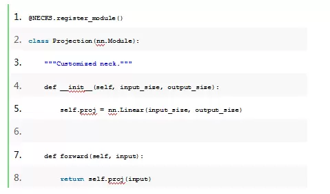 2、基于注册机制,用户可以自行编写定制化的neck、head、data pipeline, evaluator等模块,快速注册到框架内,通过配置文件指定type字段进行创建和调用。