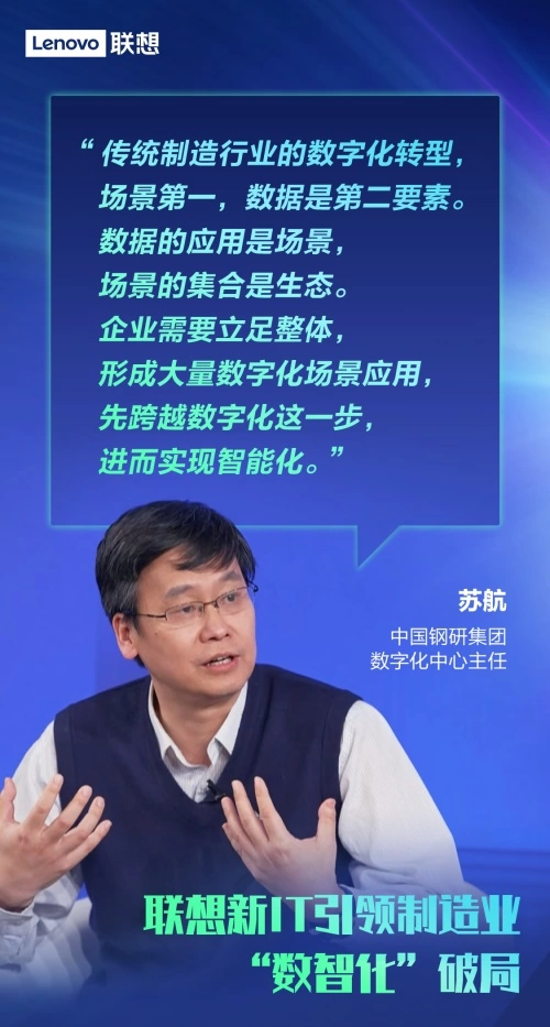 近期,联想基础设施方案业务集团(ISG)中国举办了《联想新IT引领制造业“数智化”破局》在线研讨会。工业和信息化部中小企业发展促进中心处长童有好,中国航空工业信息技术中心首席顾问宁振波,中国钢研集团数字化中心主任苏航,以及联想ISG中国区大制造行业总监宋涛,四位来自“政、产、研、商”不同领域的嘉宾围绕制造业的数智化破局,从国家政策、产业环境、数字化转型需求、绿色低碳转型等角度展开深入讨论。