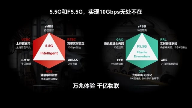 为此,两年前在无线领域,华为最先提出了5.5G,现在我们已经完成了5.5G的多项关键技术创新和验证。今天,在这次大会上,我们也在固网领域,首次提出F5.5G的产业愿景,目标是将带宽、覆盖和体验提高10倍以上。我们希望通过无线和固网这两个领域的创新,持续推进联接产业的发展。