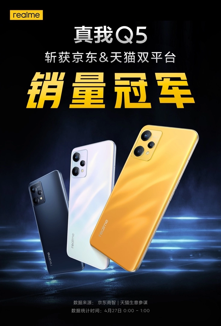 首销夺冠:开售1小时,realme真我Q5斩获京东、天猫双平台销量冠军