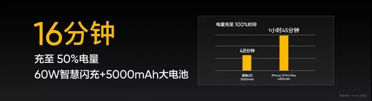 作为此次斩获京东、天猫双平台销冠的真我Q5,它搭载了60W智慧闪充+5000mAh大容量电池,16分钟即可回血50%,最高可实现长达29天待机时间,带来价位段越级的续航组合,为手机用户带来“充得快用得久”的续航体验,堪称“超级续航王”,这也是真我Q5能成为爆款销量单品的重要原因。