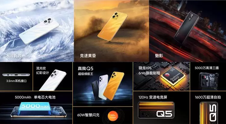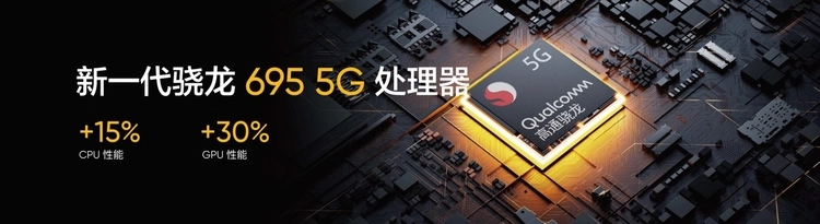 在性能方面,真我Q5搭载新一代骁龙695 5G处理器,采用6nm制程工艺,相比于上一代,CPU性能提升15%,GPU性能提升30%,功耗却大大降低。让真我Q5的续航表现再上一层楼,成为真正的“超级续航王”。