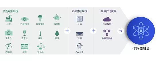 真正的虚拟助理是在终端里面有一个“数字化的我”。因此,它需要分析个人信息并不断学习用户偏好,从而成为真正了解用户的数字助理。情境式智能是实现个性化的必备条件,而实现情景式智能需要融合多种终端侧传感器的数据(如麦克风、摄像头和陀螺仪)及其他终端侧和终端外数据(见图3)。