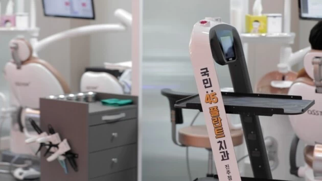 “欢迎来到国民45牙科诊所晋州分店,我们将以合理的价格为您提供最好的医疗服务!”在韩国晋州市一家牙科店内,可以看到两台智能机器人在店里繁忙而有序地穿梭不停,它们装载着各种医疗用品前往各个治疗室,引起患者的强烈好奇。