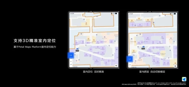 华为Mate Xs 2作为新一代折叠旗舰,在设计美学、智慧通信、影像科技和大屏交互体验上全面进化。基于Petal Maps Platform业界领先的室内定位能力,华为Mate Xs 2支持3D精准室内定位,当用户在机场、高铁站、商场等室内时,搜索具体的店铺等位置信息,即可精准定位,根据路径规划前往目的地。目前华为室内定位技术已覆盖国内160+城市、1300+核心商圈、20+大型交通枢纽等大中型公共建筑,为华为Mate Xs 2用户带来“店铺级”精准定位、跨层自动切换、定位连续不间断的室内定位新体验。