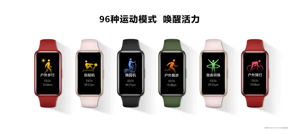 另外,华为手环7还支持跑步、骑行、游泳、跳绳、轮滑等多达 96种运动模式,基本囊括了当下常见的主流运动,能满足各种运动爱好者的需求。