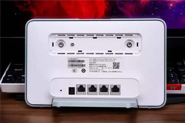 再来看路由器的背面,4个插口均为千兆速率,适合百兆及以上光纤宽带接入。这款路由既可以接入光纤,也可以使用物联卡,一机多用非常方便。