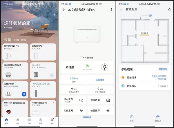 前面就说到华为移动路由是一款支持插入4G 卡的移动路由,同时还支持网线的接入使用。而有线Wi-Fi的峰值连接速度高达300Mbps。插入网线后通过华为智慧生活APP进行管理,为接入的设备手动选择流量优先或者宽带优先。在APP中还是可以自己设定户型图,标注你路由器的位置,当然这个比较适合家用,像我们这款移动路由器其实影响不大。
