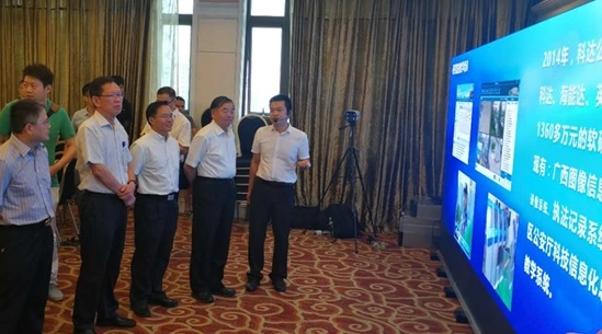 为了更好地向参会领导和嘉宾展示广西警察学院科达公安信息化联合研究室研究成果,在论坛的入口,设置一块由科达晶艳小间距LED组成的6米*1.8米高清大屏,由讲解人员向各位领导和嘉宾演示研究室与科达联合开发的猎鹰人员卡口系统、海燕车辆二次分析系统、图像综合应用平台等多个实战系统。