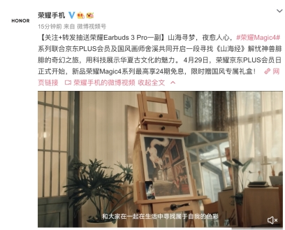 荣耀Magic4系列的影像技术与中华文化完美结合,让更多消费者感知到华夏文化的奇妙魅力。据悉,4月29日荣耀京东PLUS会员日,新品荣耀Magic4系列最高享24期免息,限时还可赠国风专属礼盒,欢迎广大消费者选购。