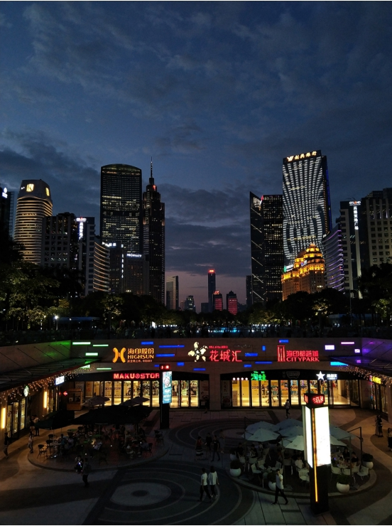 接着天更黑,拍摄出上面的两张照片,感觉效果也还不错。尤其作为一款AI手机而言,体现出了应有的素质,照片画面也较为良好地还原了广州美丽繁华的夜景。