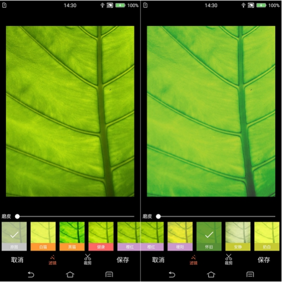 对于一张比较喜欢的照片,还可以使用相册自带的编辑功能,里面有众多预设可以选择,比如在这里选择“怀旧”预设,便得到上图右边的效果。