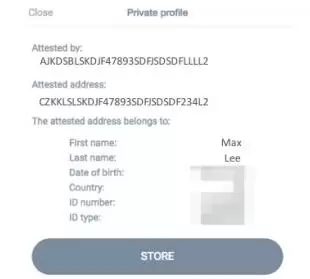 完成上述工作后,机器人会通知结果。 如果验证成功,机器人会将认证记录发布到DAG(只包含个人信息的散列,除非用户明确要求发布更多个人信息),并且系统会提示用户将个人信息保存在钱包中以供将来使用: