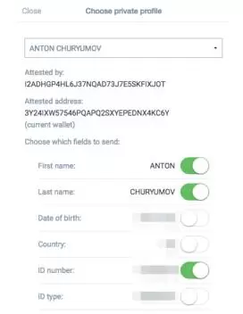 现在,当用户想要将个人资料透露给他人或机器人时,可以将其从用户钱包中提取,就像将的身份证从用户的实体钱包中取出一样,并选择想分享的字段: