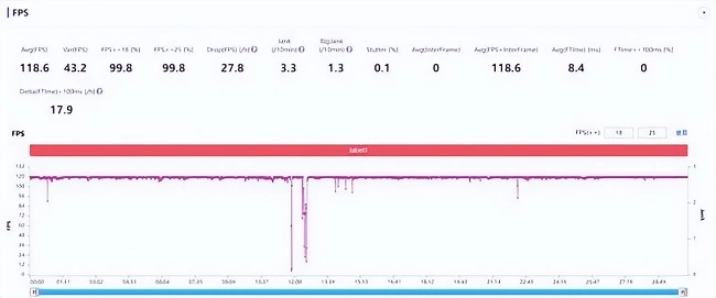 vivo X80在30分钟《王者荣耀》最高画质实测,平均帧率达到118.6帧(图源PConline)