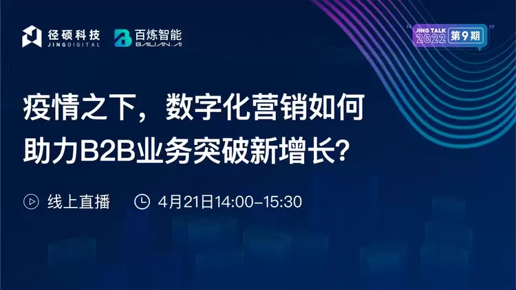 近日,百炼智能与径硕科技联合举办了以“疫情之下,数字化营销如何助力B2B业务突破新增长”为主题的线上活动,百炼智能创始人兼CEO 冯是聪 和径硕科技董事长兼CEO 洪锴 一同现身直播间,聚焦疫情之下的企业数字化转型链路,云端探讨B2B企业应对疫情的增长策略与突破点。开场环节,百炼智能创始人兼CEO 冯是聪 带来了《“无接触”精准营销,B2B企业增长新玩法》的分享,希望帮助企业在疫情期间转危为机,创造增长“拐点”。以下是直播精彩回顾: