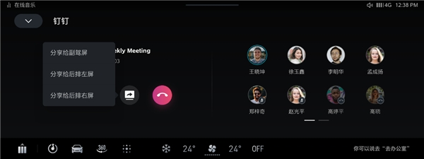 (车载钉钉分享屏幕示意)