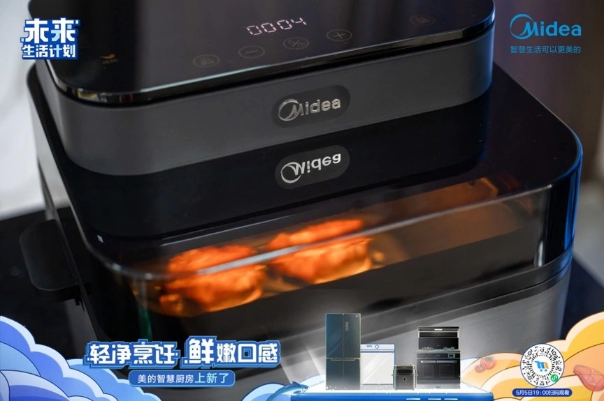 让食材新鲜如初,让烹饪、清理更方便智能,打造未来厨房新体验,5月5日19:00,美的基于当代年轻人生活方式的新洞察,以会客厅+厨房场景的创新形式,打造“美的智慧厨房上新了”线上直播发布会。美的重磅发布“口感CP”+“轻净CP”4款新品,解决“储存”“烹饪”“清理”多重痛点,为消费者的未来生活计划提案。