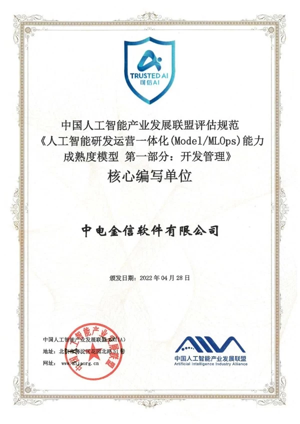 近日,由中电金信作为核心编写单位参编的全球首个AI模型开发管理标准 --《人工智能研发运营一体化(Model/MLOps)能力成熟度模型第一部分:开发管理》正式对外发布。
