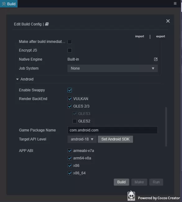 作为广受全球开发者青睐的数字内容生产引擎,Android平台上一直存在着大量由 Cocos 制作的内容,Cocos 也一直与 Google 保持着紧密的合作关系。在此次更新中,Cocos 正式添加了对Google Frame Pacing Library技术的支持,其主要用于帮助游戏平滑和稳定帧率。该功能可以在编辑器的 Android 构建面板中一键开启。