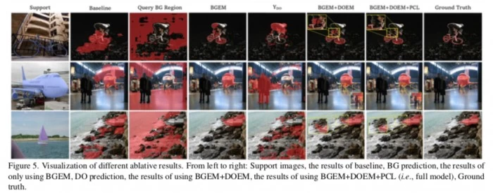 在被收录于顶会CVPR的《Learning Non-target Knowledge for Few-shot Semantic Segmentation》(《学习用于小样本语义分割的非目标知识》)研究中,团队从挖掘和排除非目标区域的新角度重新思考了少样本语义分割,继而提出了一个新颖的非目标区域消除(Non-target Region Eliminating)框架,其中包含了一个背景挖掘模块(Background Mining Module)、一个背景消除模块(Background Eliminating Module)和一个分散注意力的目标消除模块(Distracting Objects Eliminating Module)以确保模型免受背景和分散注意力目标的干扰进而获得准确的目标分割结果。不仅如此,该研究还提出一个原型对比学习(Prototypical Contrastive Learning)算法,通过精炼原型的嵌入特征以便更好的将目标对象与分散注意力的对象区分开来。