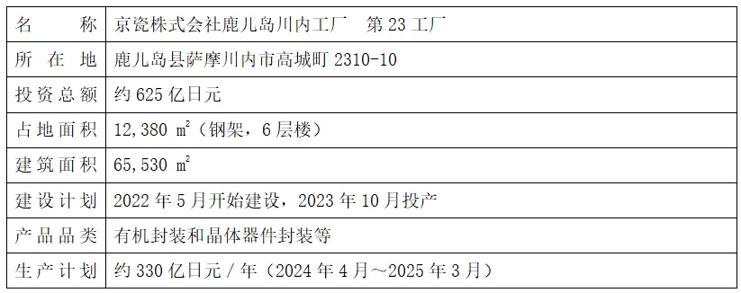 - 为应对日益增长的有机封装和晶体器件封装的需求 京瓷在鹿儿岛川内工厂新建厂房