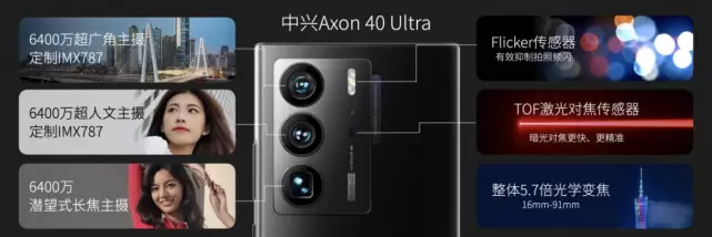 在全面屏让用户“看见大场面”的同时,中兴Axon 40 Ultra三主摄配置全面升级,打造涵盖6400万像素超人文主摄、6400万像素超广角主摄、6400万像素潜望式长焦主摄的业界最强三主摄,匹配多个“业界唯一”的强大计算影像能力,进一步成就“记录大场面”的影像旗舰。