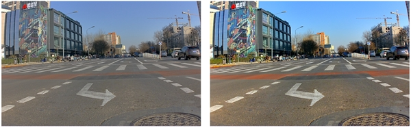 强日照下拍摄室外顺光街景,优化了楼宇之间的街景容易产生动态范围低、偏色等问题。