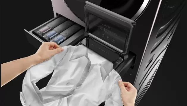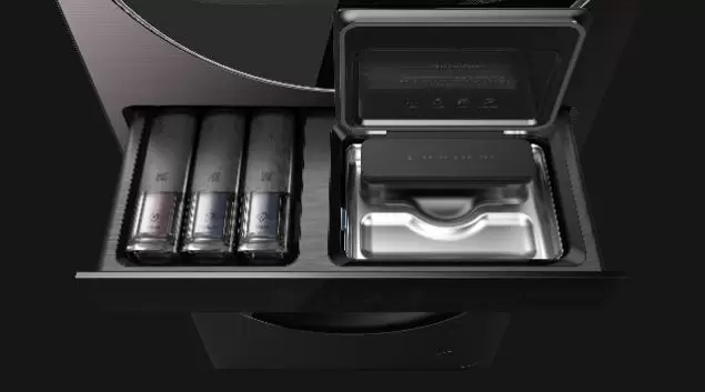 同时,在中间位置增加“AI智能添加”模块,超大容量和浓缩配方可以满足用户的长久使用,根据检测到的衣物材质、重量和污垢程度,精确的分配洗涤剂及推荐购买,从而减少浪费和造成环境污染。特设“超声波”抽屉,使用不锈钢抗菌材料,主要用于衣物的衣领、袖口、局部污渍处理,还可以进行首饰及眼镜等精致物品的护理,使之焕然一新。
