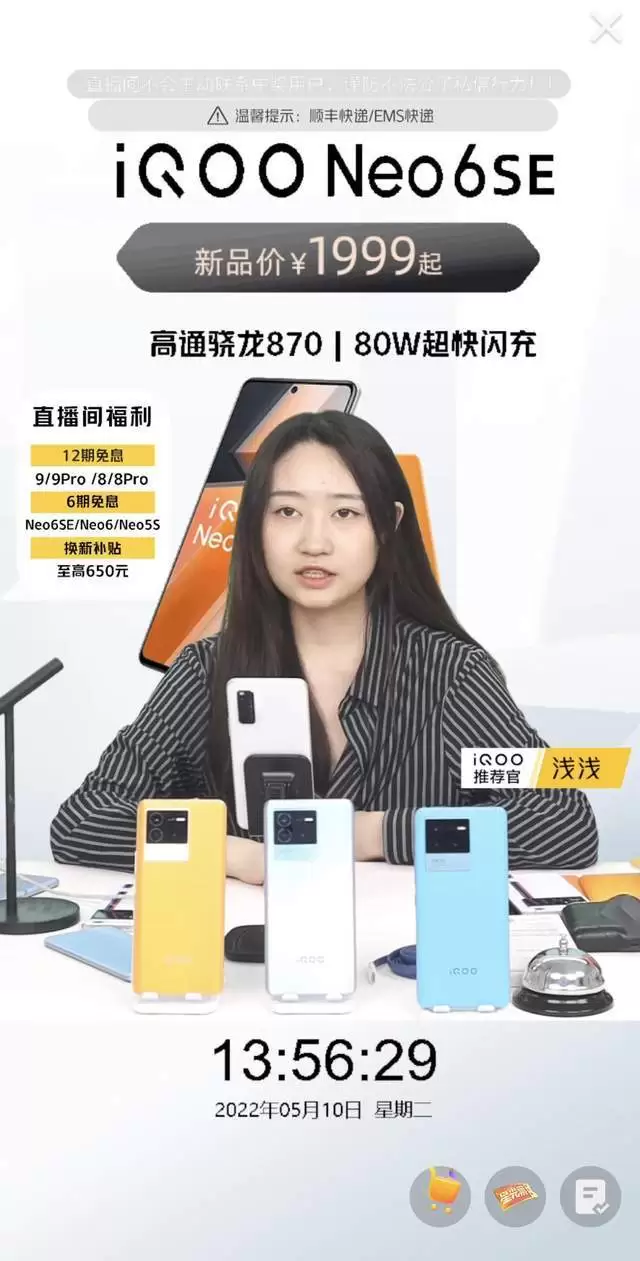 不久前,iQOO性能家族迎来了最新成员——iQOO Neo6 SE。刚一亮相,新机便展现出了卓越的产品力。新机搭载了骁龙870旗舰级芯片,更拥有双电芯80W 闪充、6400万像素OIS光学防抖三摄等优势配置,可谓看点十足。正值新机发布,快手iQOO官方直播间也携手知名文化产品集团“盘子女人坊”,在快手平台带来了多项超值购机权益,包含直播间购机抽现金红包、以旧换新至高补贴650等,带来超大的优惠力度!