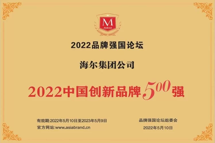 - 海尔连续22年跻身中国500最具价值品牌,蝉联前三