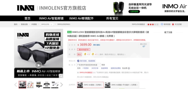 福利活动二,购买INMO Air AR眼镜即送价值199元的墨镜片;